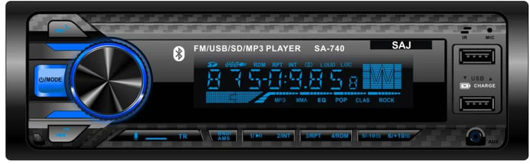رادیو پخش ساج دارای پنل جداشونده است. همچنین دارای 2 پورت USB میباشد که میتوانید از فلش آهنگ استفاده کنید و از پورت مخصوص شارژر میتوانید گوشی های اندروید و آیفون خود را با استفاده از کابل مخصوص شارژ نمایید. صفحه نمایش محصول LED و تعدادی از دکمه های آن نوردهی رنگی دارد.شما میتوانید با استفاده از دکمه TR موجود روی ضبط نوردهی را به حالت چند رنگی دربیاورید. این محصول قابلیت تنظیم میزان زیر و بم و بالانس صدا و همچنین باس را دارا میباشد. میتوانید با استفاده از کنترل یا دکمه های روی رادیو پخش به تغییر موج رادیو، جابه جایی پوشه های آهنگ، تکرار آهنگ، پخش تصادفی و … اقدام کنید. بلندی صدا تا عدد 63 میباشد.