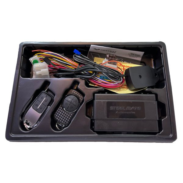 اقلام همراه : کیت اصلی، ریموت، آژیر، شوک سنسور، دسته سیم بندی با فیوز، دفترچه راهنما