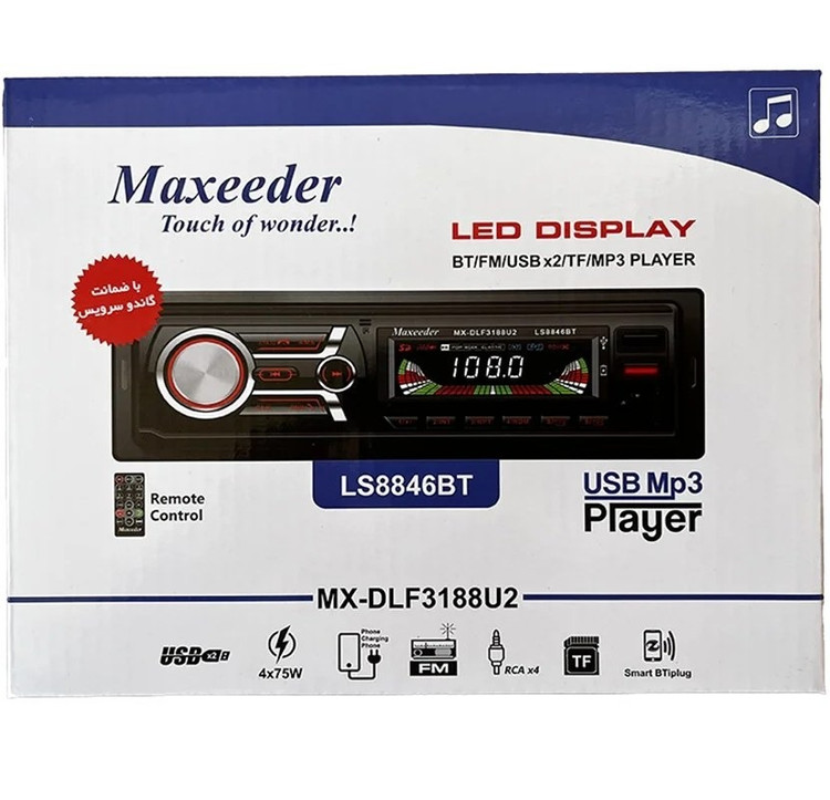 پخش مکسیدر مدل DY8836BT محصول جدید سال 2022 میلادی شرکت Maxeeder است.پخش مکسیدر DY8843BT دارای 12 ماه گارانتی شرکت گاندو سرویس میباشد.ضبط مکسیدر 8843 قابلیت جدا شدن پنل ندارد و
