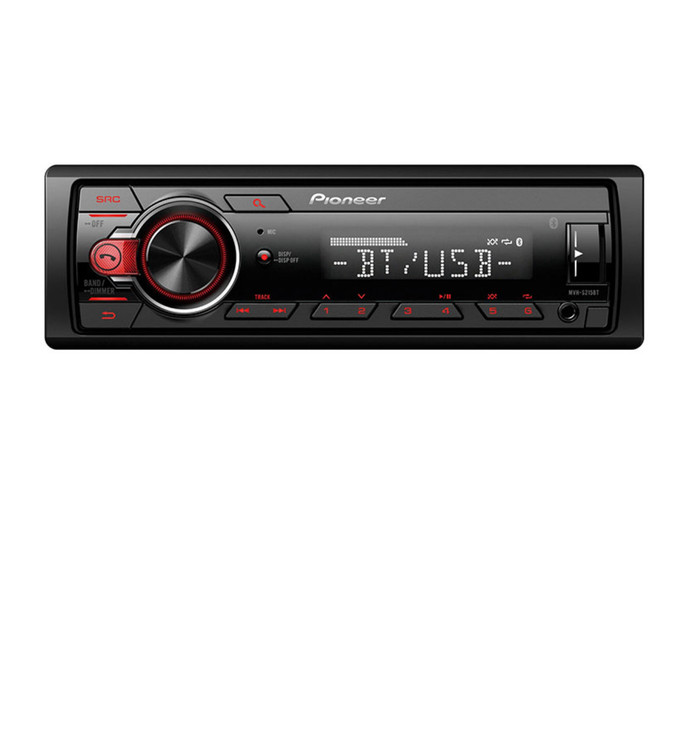 ضبط ماشین پایونیر MVH-S215BT محصول دیگر از پایونیر و سری MVH مدل MVH-S215BT که با طراحی زیبا و چشم نواز تولید شده است. مشخصات فیزیکی دستگاه ، ابعاد با 180×180×50 میلی متر ، وزن 1 کیلوگرم بوده و پنل آن قابلیت جدا شدن دارد و از صفحه نمایشی نقطه ای ماتریکسی (DotMatrix Display) بهره مند است که با نور پس زمینه قرمز زیبایی خاصی به خود گرفته است. از مشخصات فنی ضبط ماشین پایونیر MVH-S215BT میتوان به وجود پورت های USB ، AUX و بلوتوث اشاره کرد که پورت ها در جلوی ضبط قرار گرفته و میتوان با وجود این پورت ها بوسیله فلش دیسک و کابل AUX موسیقی های مورد علاقه خود را پخش کنید. فرمت های قابل پخش این محصول محبوب پایونیر اعم از MP3 WAV WMA میباشند که با کیفیت 24 بیت پخش میشوند. حداکثر قدرت صدای خروجی آن نیز 50 وات برای 4 کانال خروجی است و لازم به ذکر است که این پخش از یک جفت خروجی آرسی برخوردار است.